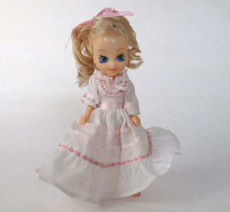 Megan, a pony friend who appeared in many of the My Little Pony movies and television episodes, is a human girl with blond, curly hair and blue eyes. She came in a box with Sundance and a number of accessories.
